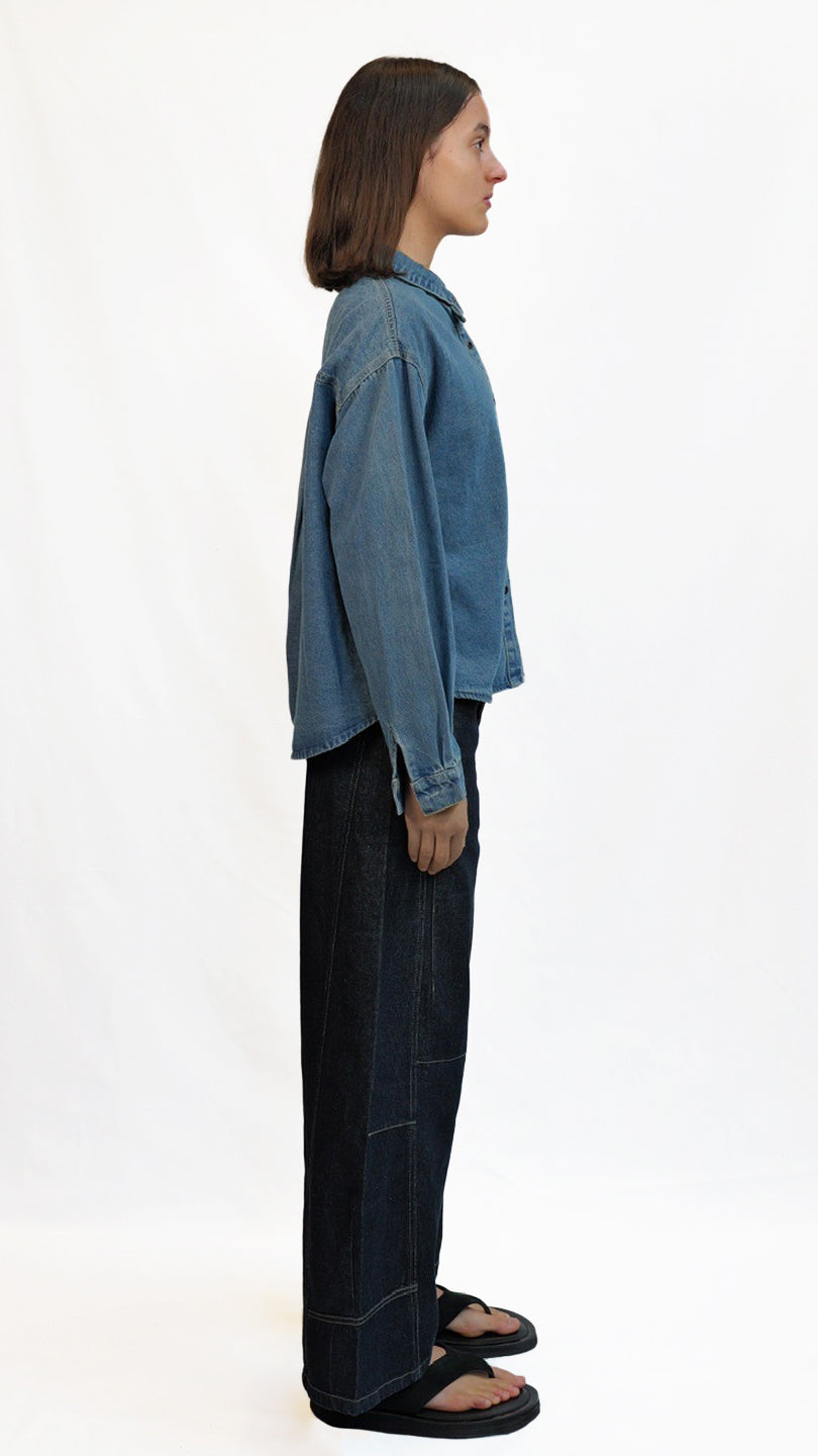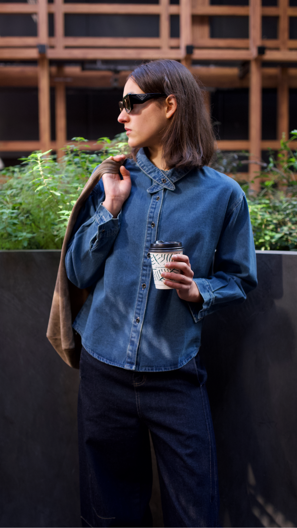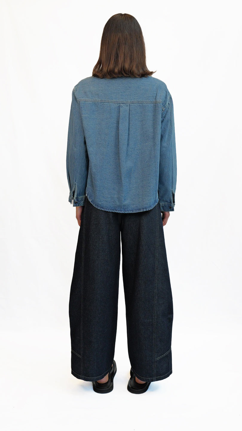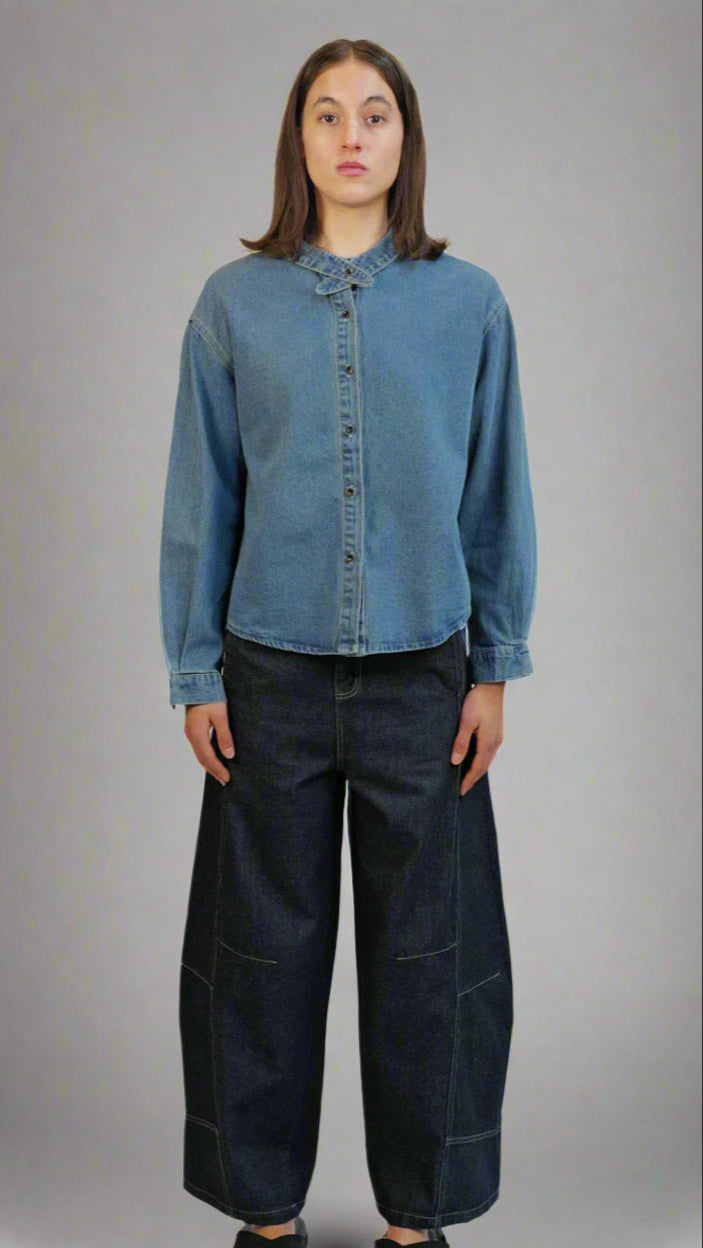 Elevate your wardrobe with the Bowie Blue Denim Shirt, crafted from soft cotton denim for lasting comfort. Features front button closure and collar detailing for a timeless, casual look. Easy to style on its own or layered.