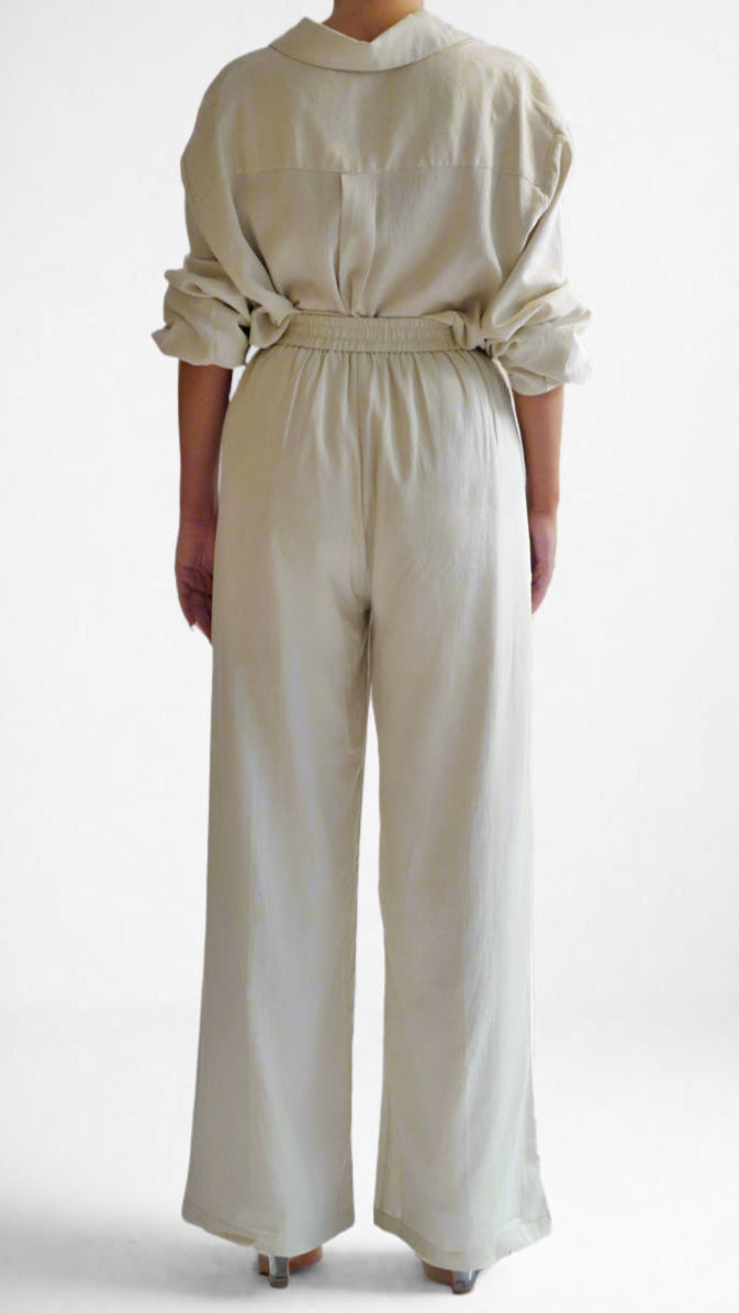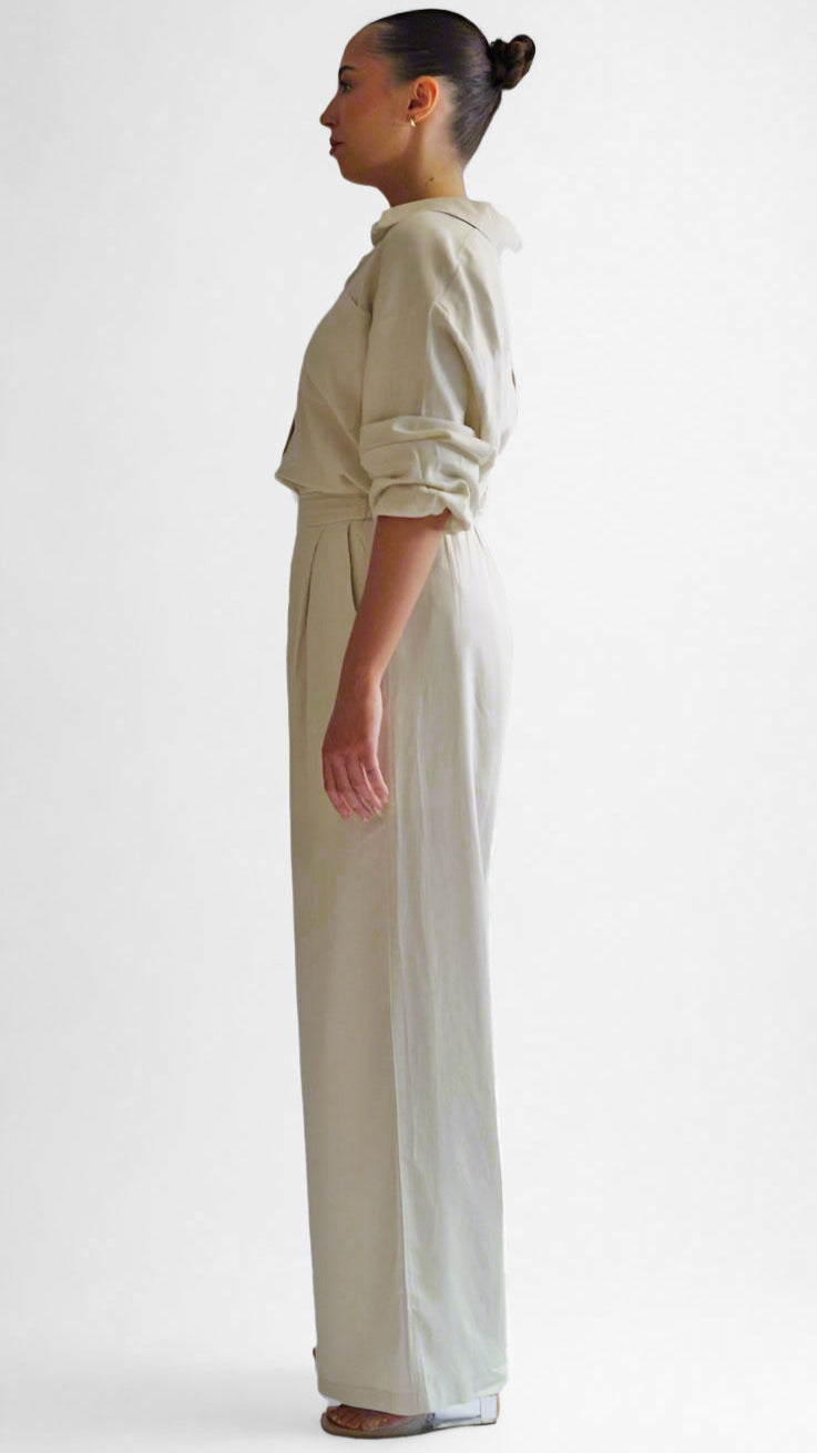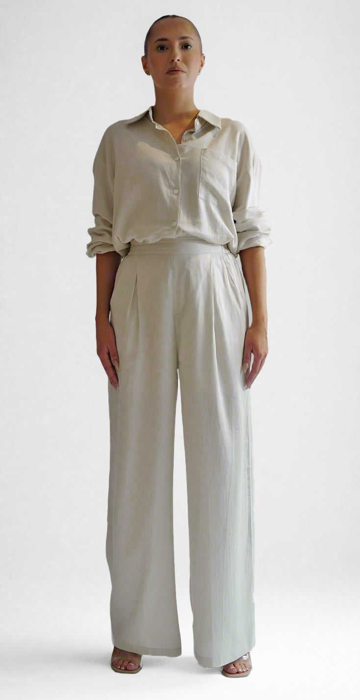 This tailored beige pants feature a flattering high-waist cut and a straight-leg silhouette for a sleek, elongating look. This pants pairs effortlessly with our Ellerie shirts for a perfect set.