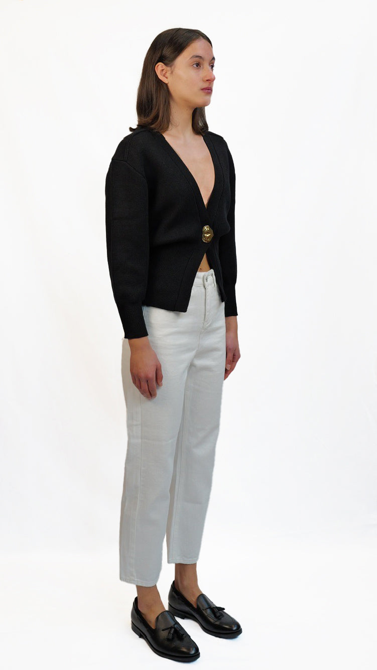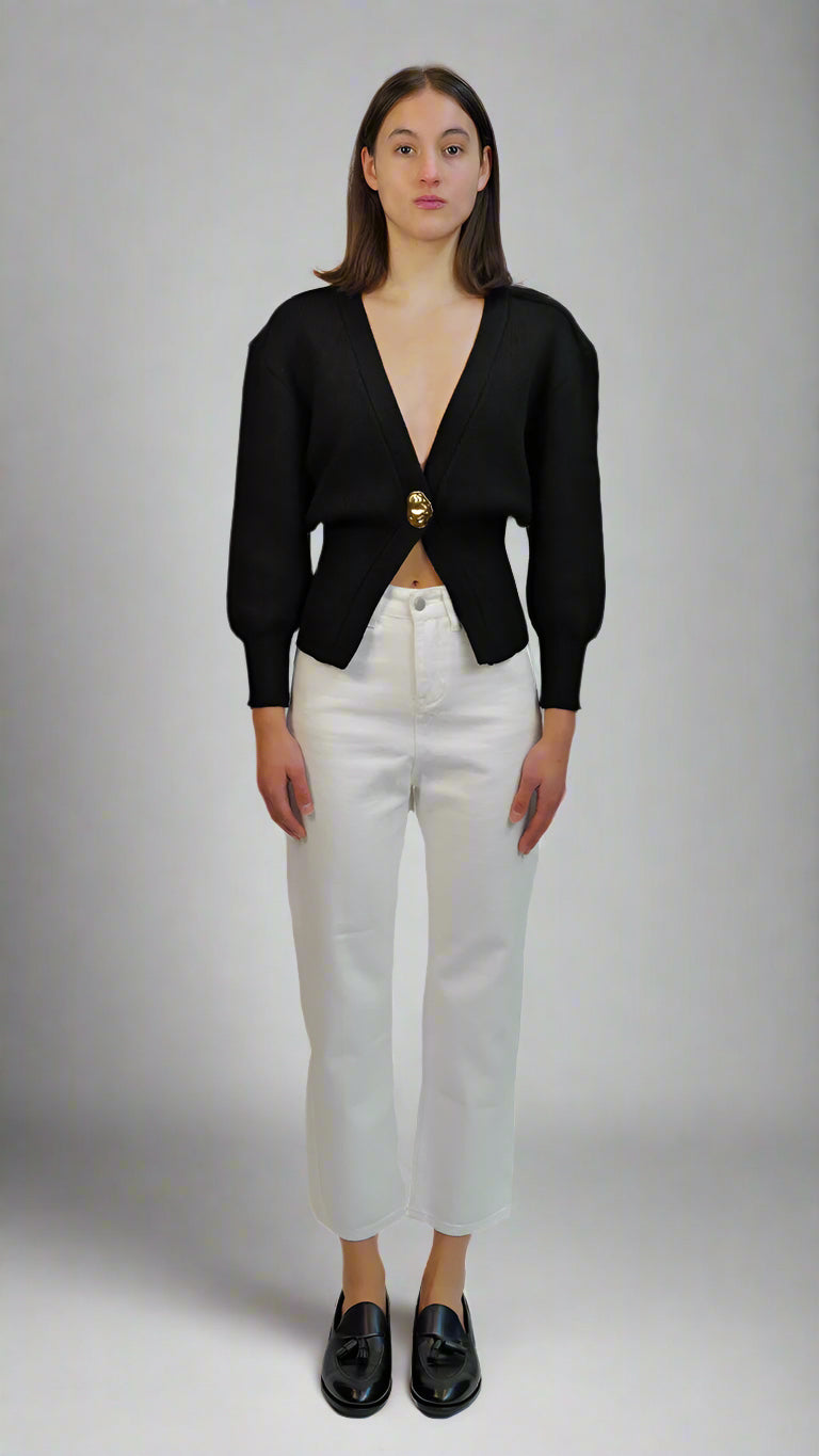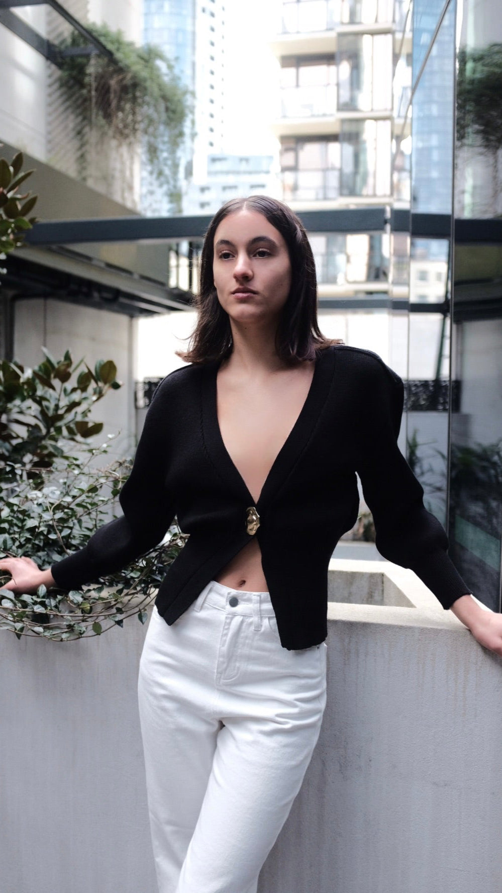 Elevate your wardrobe with the Lea Noir Knit Cardigan, crafted from a stretchable knit fabric that ensures comfort and a flattering fit. Featuring a refined V-neck design, this cardigan offers both elegance and versatility for sophisticated layering.
