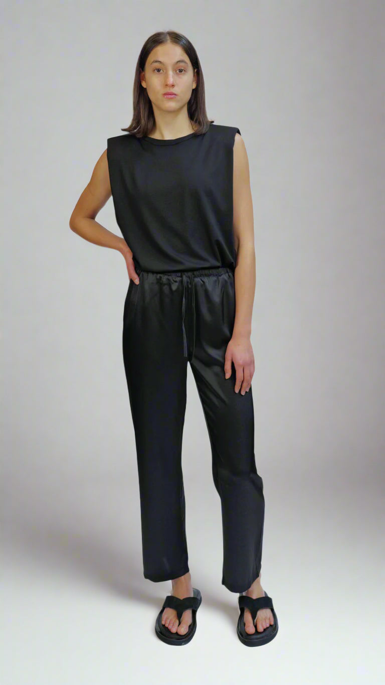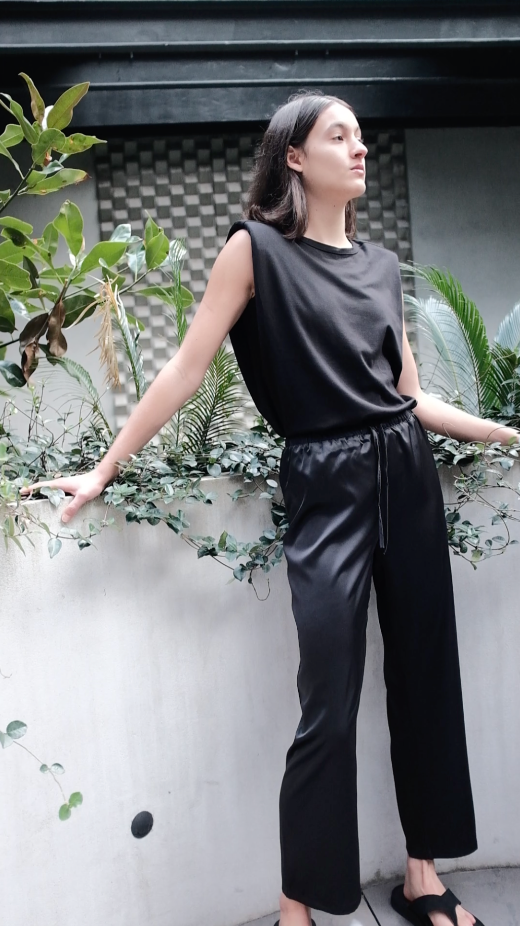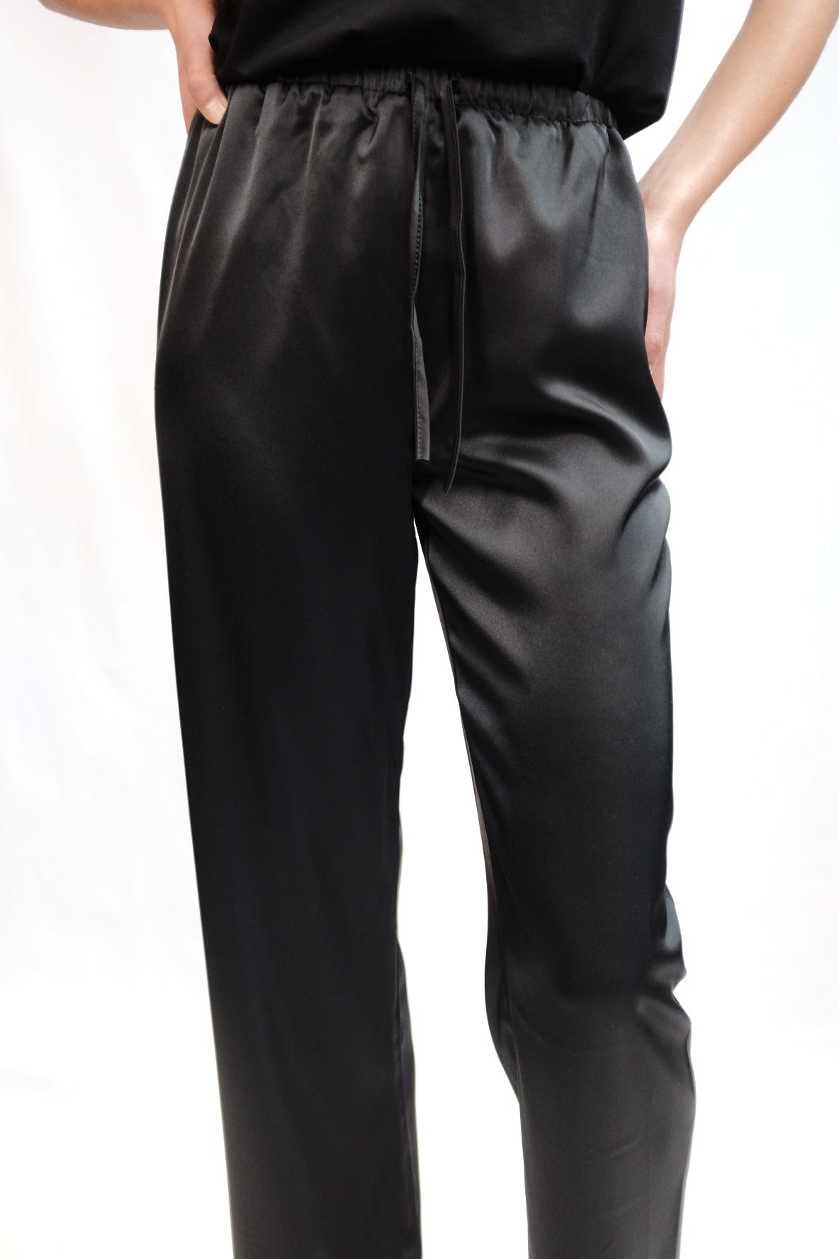 Elevate your everyday wardrobe with our sleek black satin pants, designed to move with you. Featuring a smooth, lightweight satin finish, these pants offer a luxurious feel and an effortlessly flattering drape. Whether dressed up or down, these all size friendly pants bring a modern edge to minimalist styling.