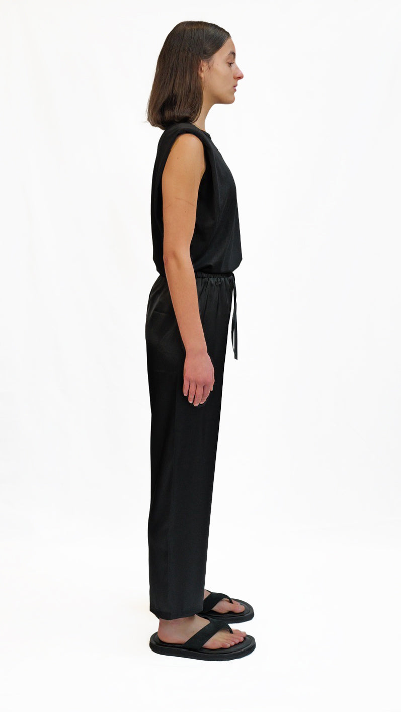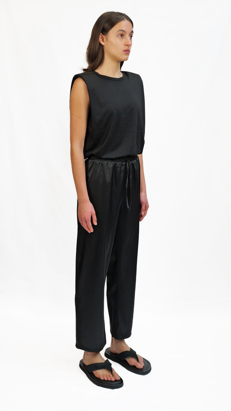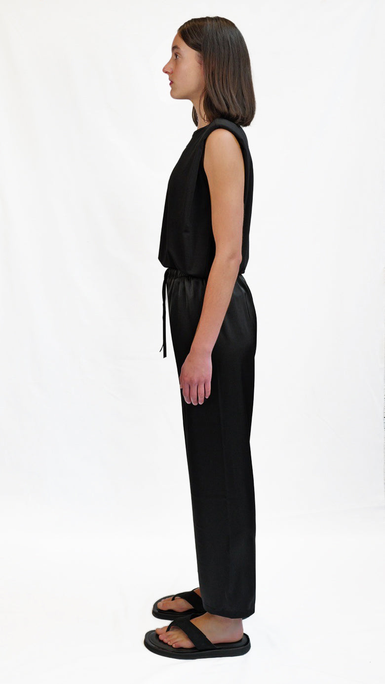 Elevate your everyday wardrobe with our sleek black satin pants, designed to move with you. Featuring a smooth, lightweight satin finish, these pants offer a luxurious feel and an effortlessly flattering drape. Whether dressed up or down, these all size friendly pants bring a modern edge to minimalist styling.
