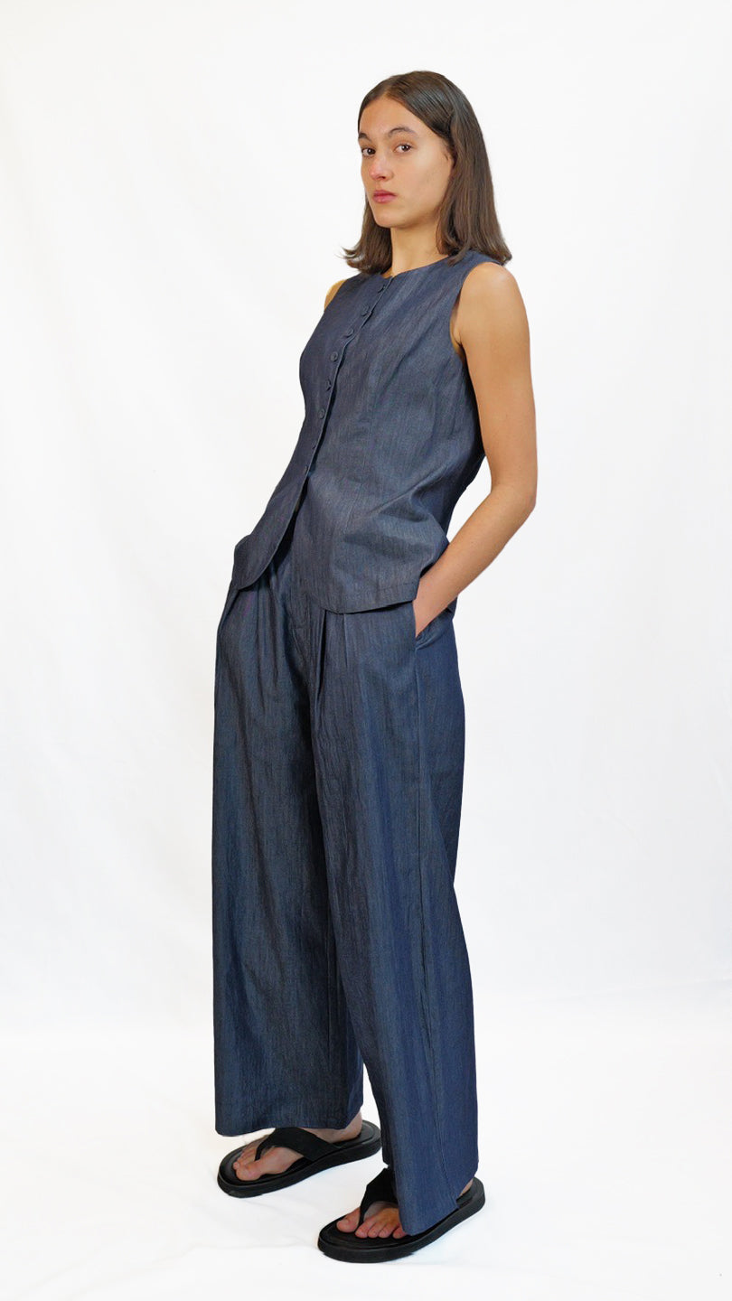 Lightweight cotton pants with a relaxed fit, featuring front pockets and stretchable waistband at the back for extra comfort. Perfect for effortless, everyday wear.